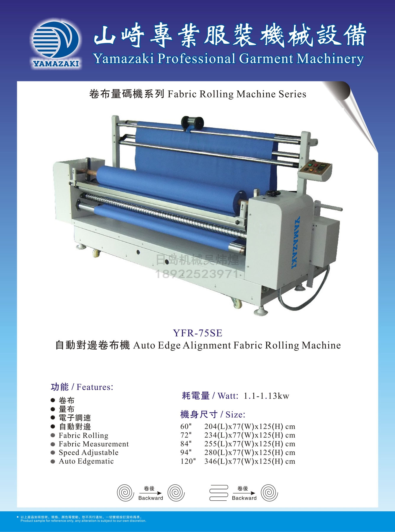 YAMAZAKI YFR-75SE Auto Edge Alignment Fabric Rolling Machine