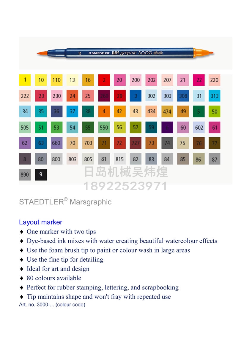 產(chǎn)品名 德國施德樓STAEDTLER MARS 3000補色筆/修色筆/畫(huà)紗筆/幻彩筆/化妝筆