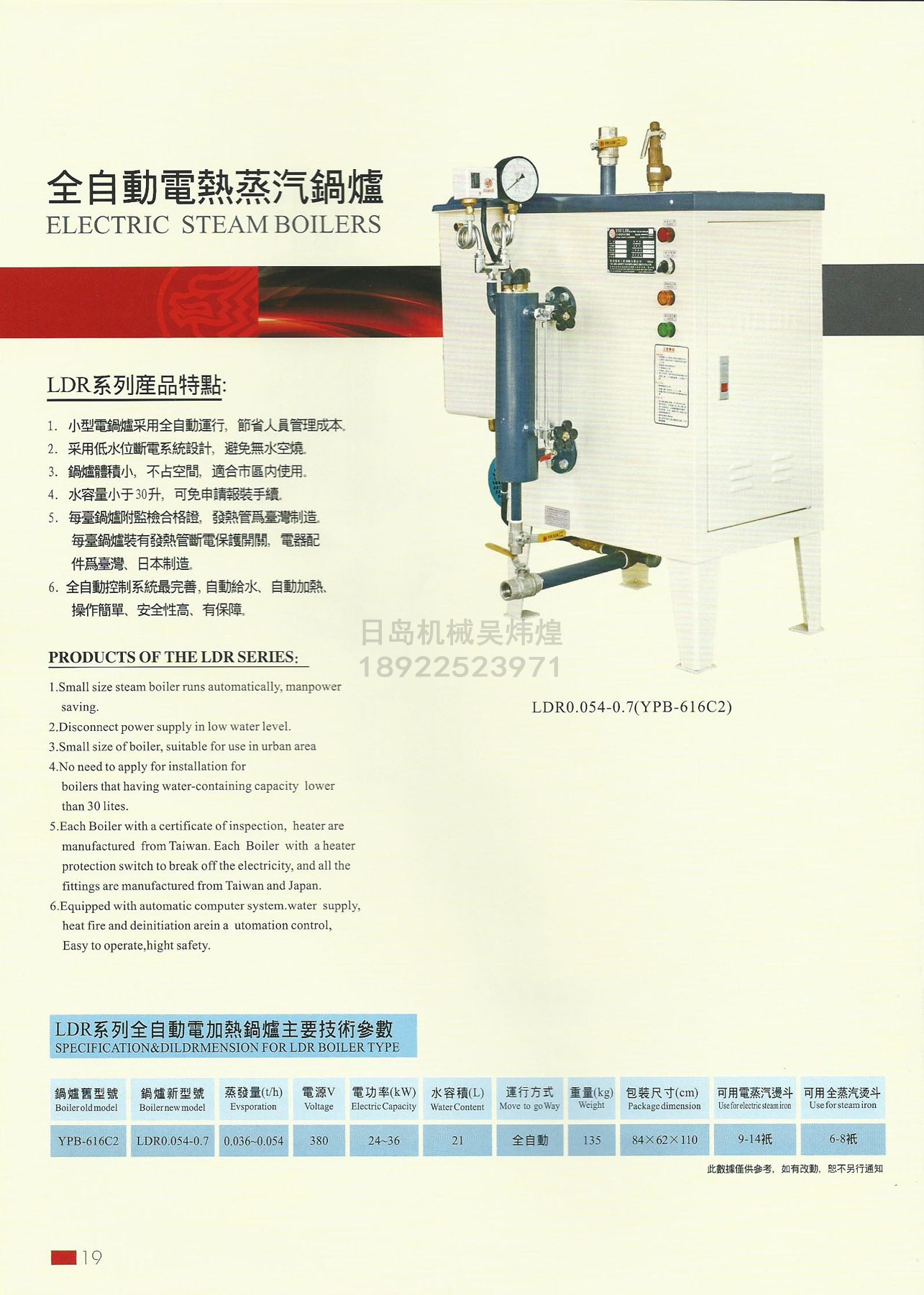 有利牌YPB-616C2全自動(dòng)電熱蒸汽鍋爐24-36KW