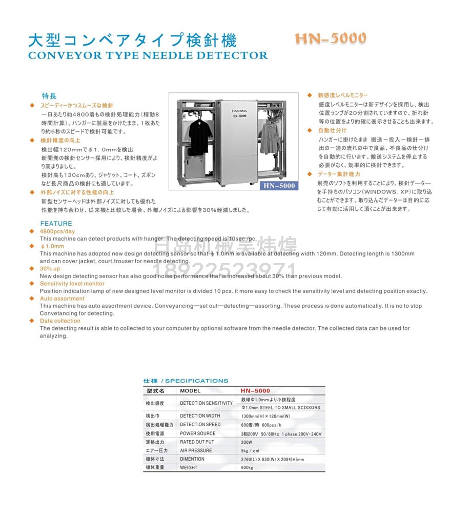 • 羽島HASHIMA HN-5000 衣架式自動(dòng)檢針機
