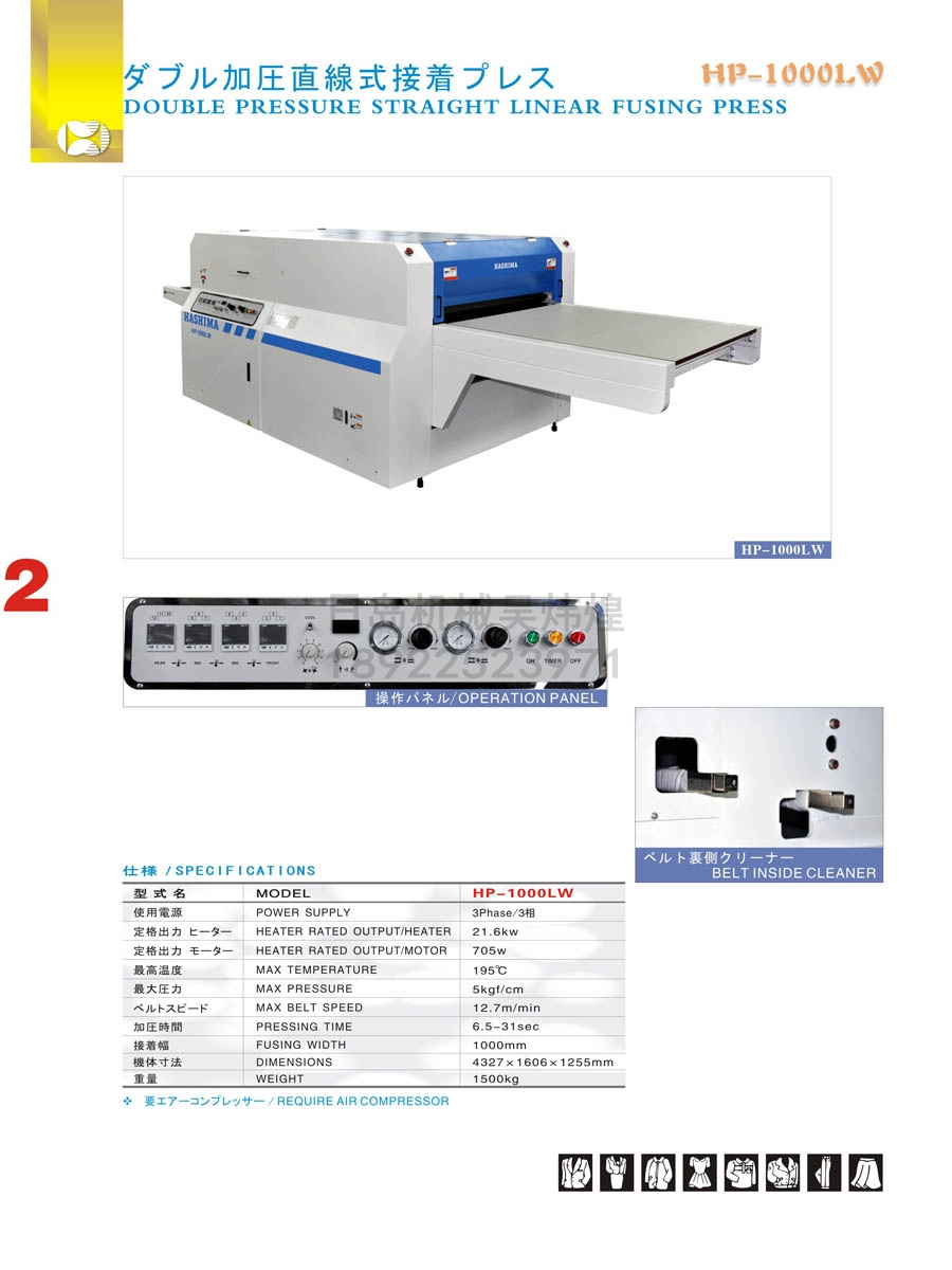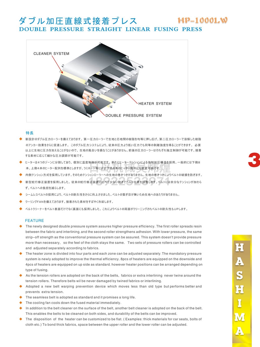 • 羽島HASHIMA HP-1000LW雙加壓直線(xiàn)式粘合機
