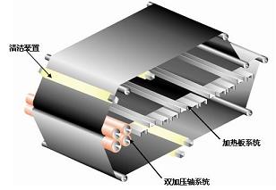 加熱板區域分為4個(gè)加熱單元,每個(gè)加熱單元實(shí)行獨立的溫度控制。對布料的加熱柔和,且對襯布的有效加熱溫度實(shí)現了更為細膩的設定。為了使皮帶更好地貼合布料,加熱板采用了彎弧形分布方式。