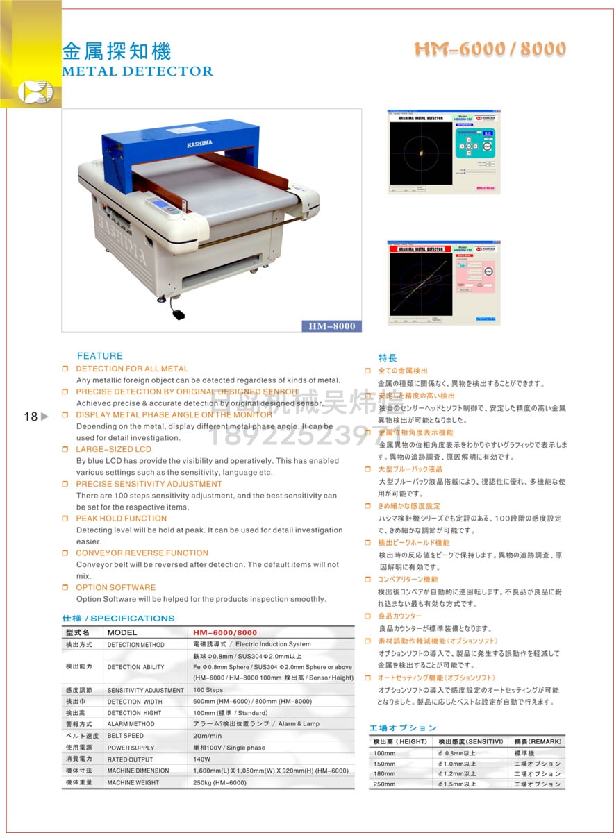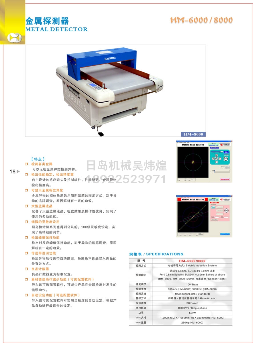 ●所有金屬的檢測……無(wú)論是哪種金屬,均可實(shí)現精準的檢測; ●指定金屬以外的檢測……例如讓鋁等指定的金屬通過(guò),鋁以外的金屬仍可被檢測得到; ●過(guò)濾反應物的檢測……可過(guò)濾絨頭織物等含有水分的材料產(chǎn)生的反應, 對金屬物質(zhì)進(jìn)行正常地檢測; ●簡(jiǎn)便的設定功能………簡(jiǎn)單的操作就可以對付反應物品,即可測定被檢產(chǎn)品的檢測信號等級, 又可自動(dòng)的進(jìn)行最適合的設定, 從而大大縮短了調節的時(shí)間,初學(xué)者也可得心應手地操作機器; ●傳送帶配備了退回功能…………檢測到異物的情況下,產(chǎn)品可自動(dòng)退?氐講僮髡呱肀擼? 從而謀求更高的工作效率; ●采用腳踏開(kāi)關(guān)……采用了腳踏開(kāi)關(guān),操作者可更有效地使用雙手, 使工作效率得到更大的提高。 |